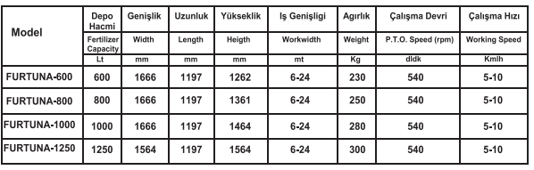 Güngör Furtuna 800 Lt - 1000 Lt - 1250 lt Çift Diskli Gübre SErpme Makineleri